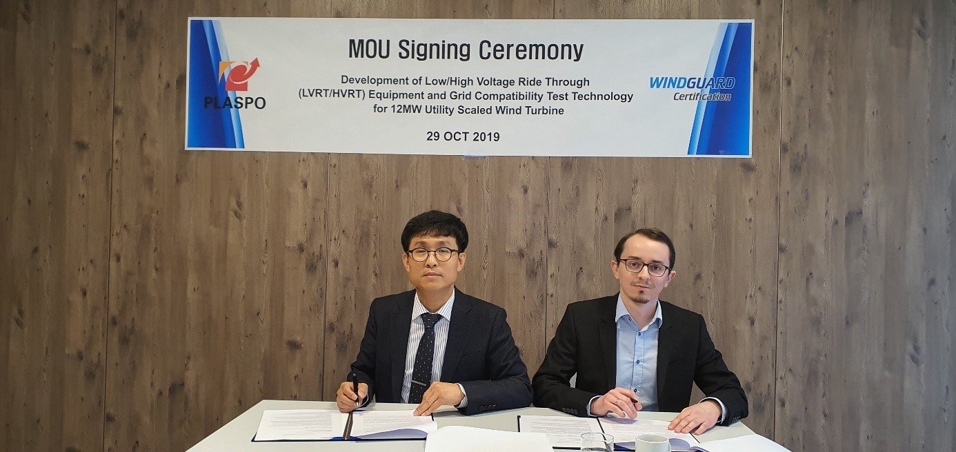 © WindGuard Certification GmbHVarel (iwr-pressedienst) - Die WindGuard Certification GmbH hat in der vergangenen Woche ein Memorandum of Understanding mit dem südkoreanischen Umrichter-Hersteller Plaspo unterzeichnet. Gemeinsam wollen beide Unternehmen im Auftrag der südkoreanischen Regierung an einem Messcontainer zur Durchführung von Fault-Ride-Through (FRT) Tests für das koreanische Netz arbeiten.