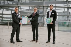 (v. l. n. r.): Michael Hahmann, Leiter Vertrieb VSB Holding GmbH, Wolfgang Saam, Geschäftsführer Klimaschutz-Unternehmen e.V., André Pasemann, Solutions Engineer VSB Holding GmbH