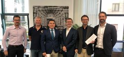 BU: Foto (von links nach rechts): Alberto Rodríguez López (Projektmanager Spanien ENERTRAG), Roland Bettscheider (Business Development TeXla Renovables), Miguel Montero Bueno (Geschäftsführer TeXla Renovables), Dr. Gunar Hering (Vorstand ENERTRAG), Dr. Tobias Bischof-Niemz (Bereichsleiter Neue Energielösungen ENERTRAG) und Aram Sander (Leiter Internationales Geschäft ENERTRAG)