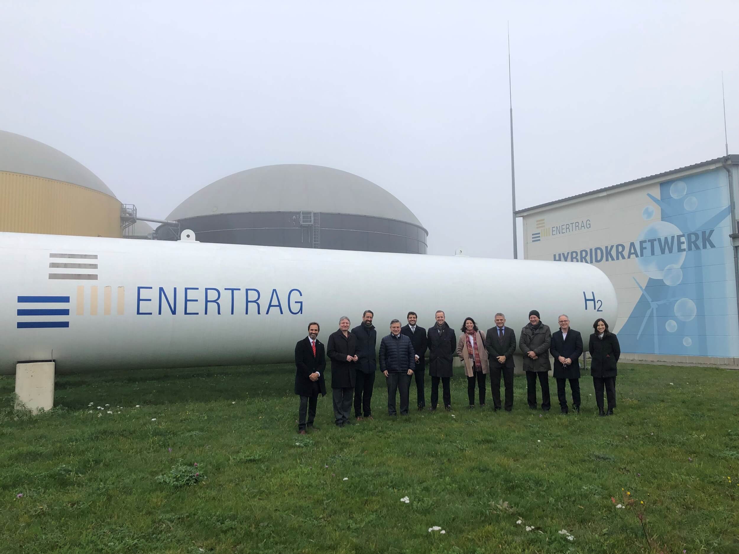 Auch die H2Global-Stiftung, deren Gründungsmitglied ENERTRAG ist, und die sich daraus ergebenden Möglichkeiten waren ein wichtiges Gesprächsthema. Ziel der H2Global-Initiative der Bundesregierung ist es, ein effizientes Förderprogramm für einen schnellen Markthochlauf und Import von Produkten auf Basis von grünem Wasserstoff nach Deutschland zu schaffen. Der vorgesehene Fördermechanismus soll den langfristigen kommerziellen Betrieb von grünen Wasserstoffanlagen und den jetzt notwendigen Markthochlauf in den industriellen Maßstab ermöglichen. Damit unterscheidet sich H2Global von bisherigen Investitionsförderprogrammen, die vor allem die Entwicklung und Erprobung von grünen Wasserstofftechnologien ermöglichten.