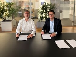 BU: Unterzeichnung des Kooperationsvertrags durch Dr. Gunar Hering, ENERTRAG, und Dr. Tim Ebert, EBERT