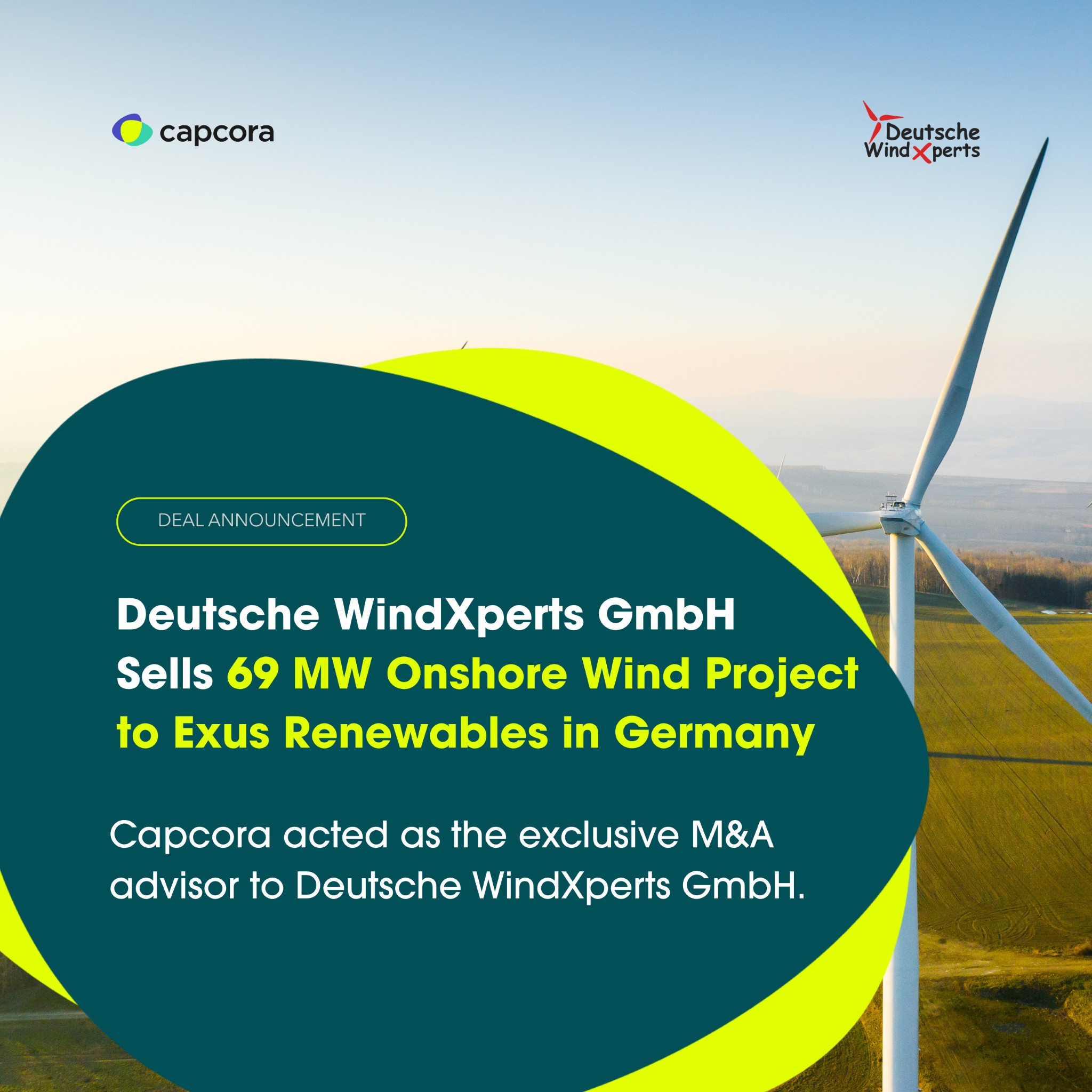 The press release "Deutsche WindXperts GmbH verkauft Onshore-Windprojekt mit 69 MW an Exus Renewables in Deutschland " von Capcora GmbH is also available in the following languages: